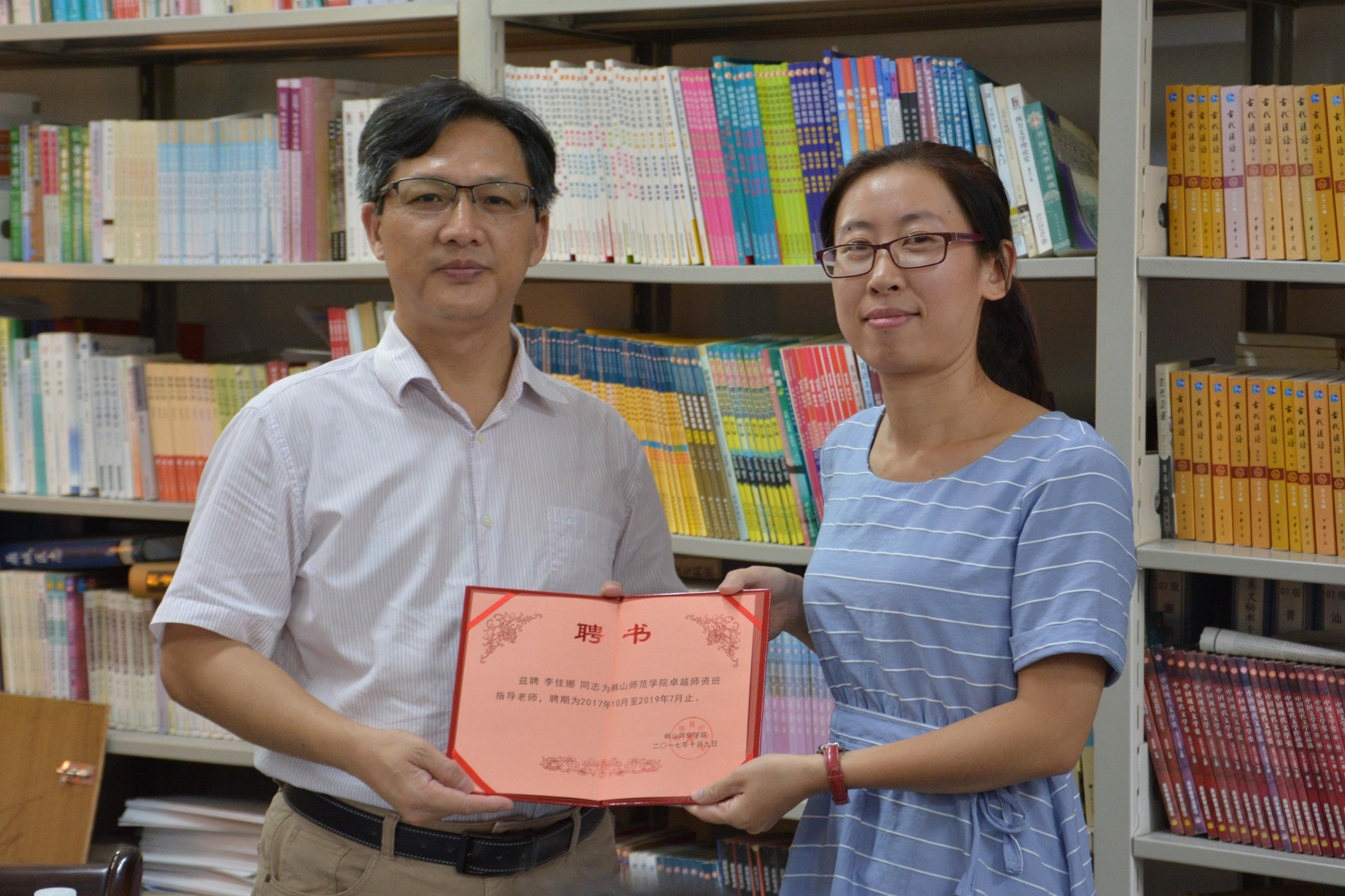会议上,蔡锐群书记宣读了2016级卓师班的分组情况及各组的校内外导师名单。本次卓师班的校内导师是:曹亚明老师、王奎光老师、杨庙平老师、吴亚南老师、许娇娜老师;校外导师是:陈煜伟老师、苏丹霞老师、陈晓妮老师、李佳娜老师、刘佳老师。赵松元院长为校外导师颁发了聘书。